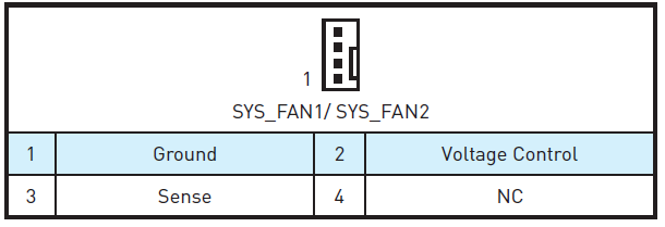 Die beiden Sysfan Anschlüsse können auch in den DC Mode geschalten werden.