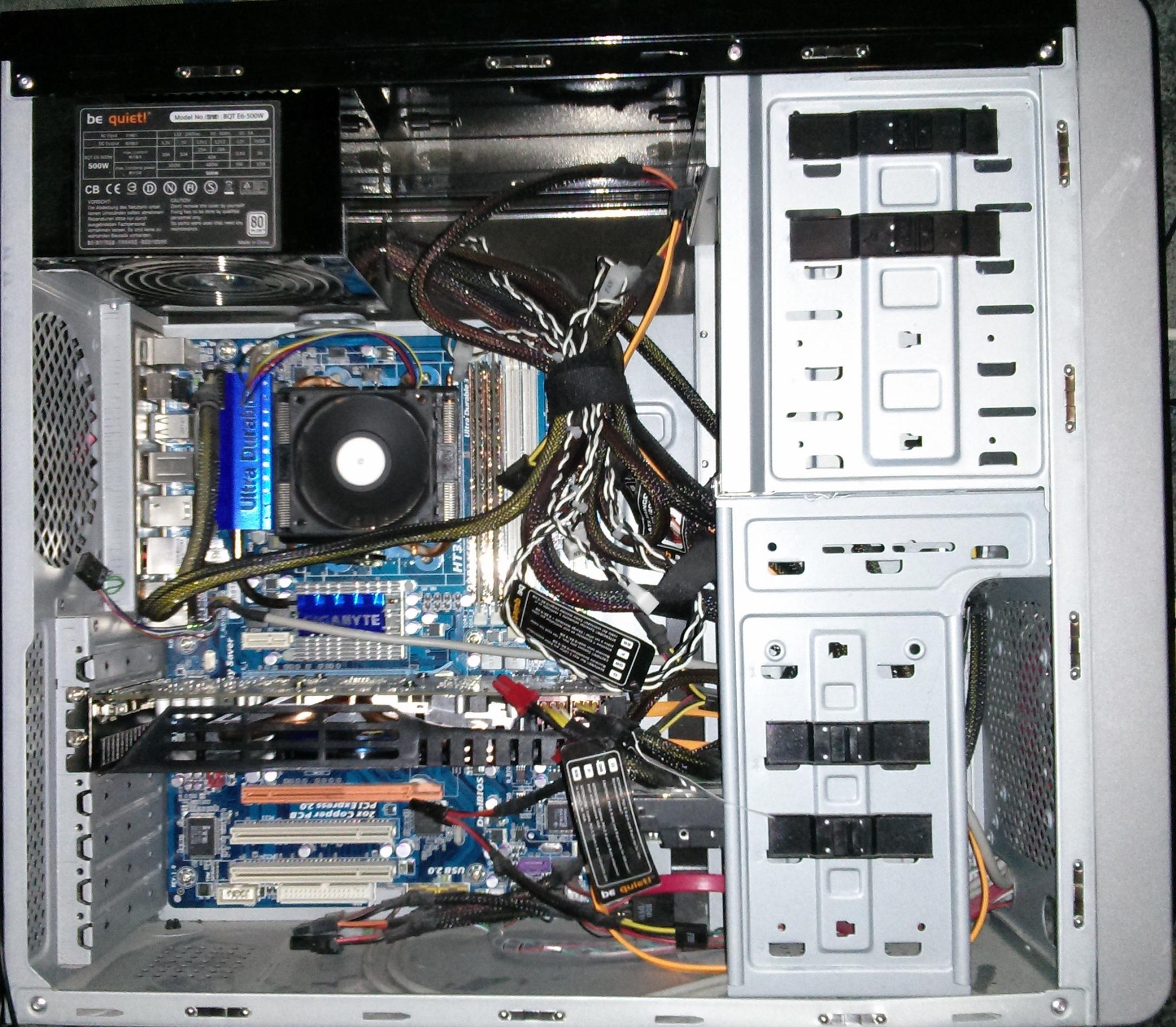 wobei bei meinem die Anordnung der Lüfter anders sind als auf der Abbildung ( seitlich nur einer, der hintere mittig, das Netzteil oben)