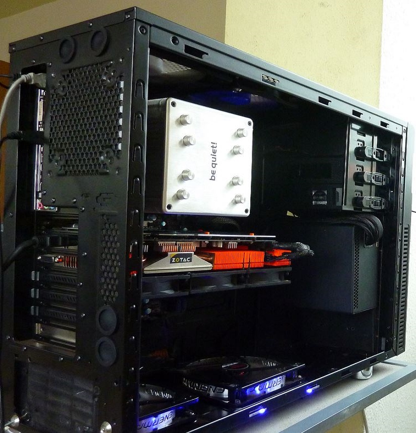 Ich habe überlegt 2 oben ins Gehäuse zu montieren, damit die Luft nach oben steigt, doch ich weiß nicht, ob es optimal wäre, wenn der Lüfter hinten im Gehäuse die Luft auch noch nach hinten befördern würde. (1 vorne, 1 hinten, 2 oben)
