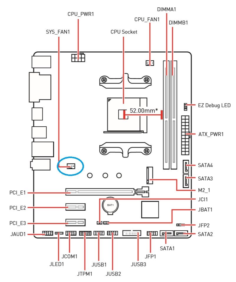 gestern kam endlich mein PC an. Heute habe ich bemerkt, dass der Gehäuselüfter sich nicht bewegt, sondern einfach nur leuchtet (es ist ein rot-leuchtender Lüfter). Ich kenn mich mit Computern nicht so gut aus, aber vom Gehäuselüfter verläuft nur ein Kabel und ist am Mainboard an SYS-Fan 1 verbunden (s. Bild 1) . Ich habe versucht, dem Lüfter einen kleinen Anschubs mit einem Stift zu geben, hat aber nicht funktioniert. Wie kann ich jetzt den Gehäuselüfter zum laufen bringen? Dadurch dass ich keine Luftzirkulation habe, kommt es zum Wärmestau und das merkt man leider auch.