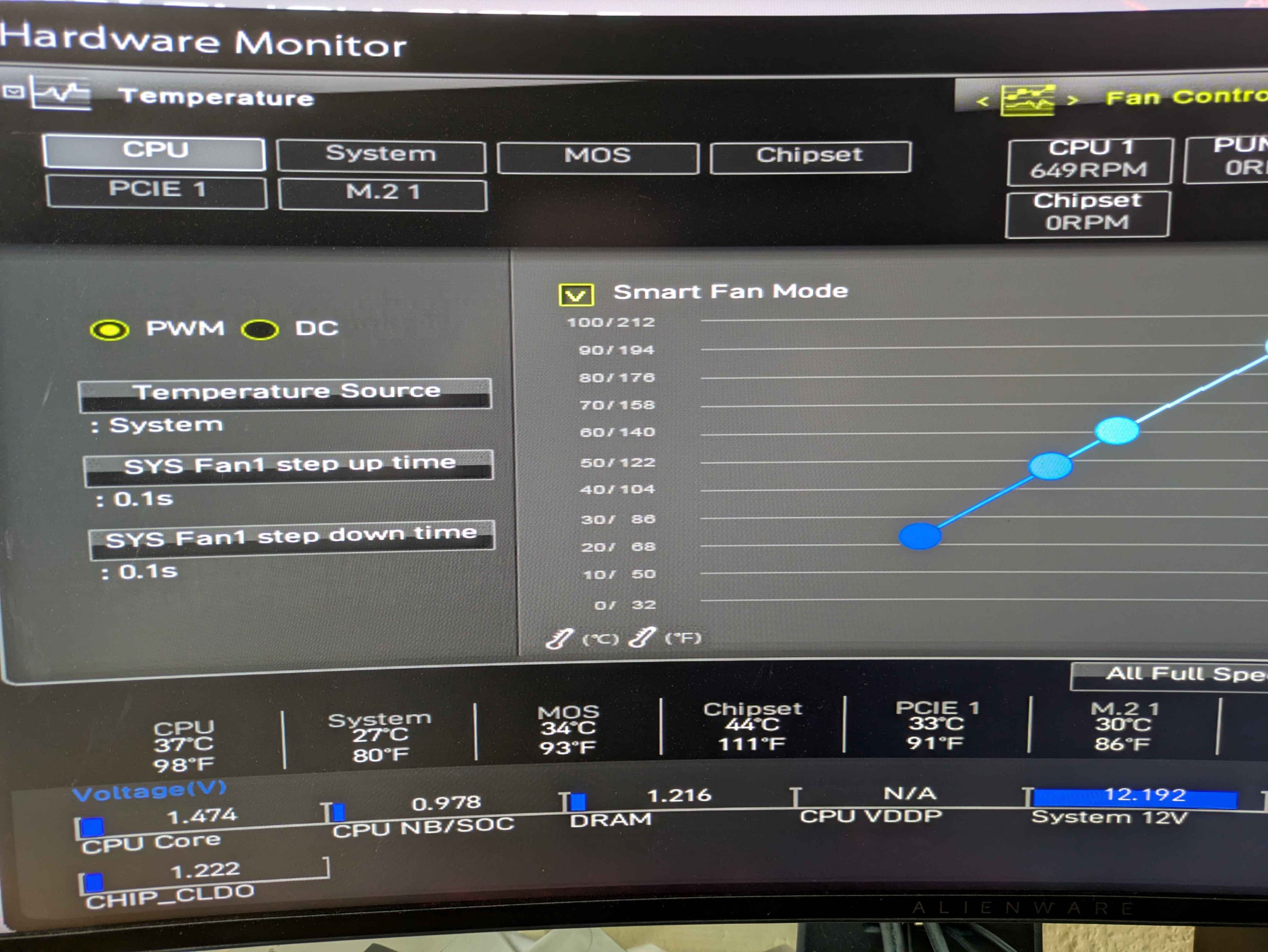 Um den Lärm in den Griff zu bekommen den Smart Fan Mode im Bios ausgeschaltet und 30% dauerhaft eingestellt. Das gab direkt einen Bluescreen mit "Page fault in nonpaged area", nach zwei Neustarts mit Ausflug in die automatische Installationsreparatur lief Windows wieder normal, am Geräuschpegel hat sich nichts geändert.
