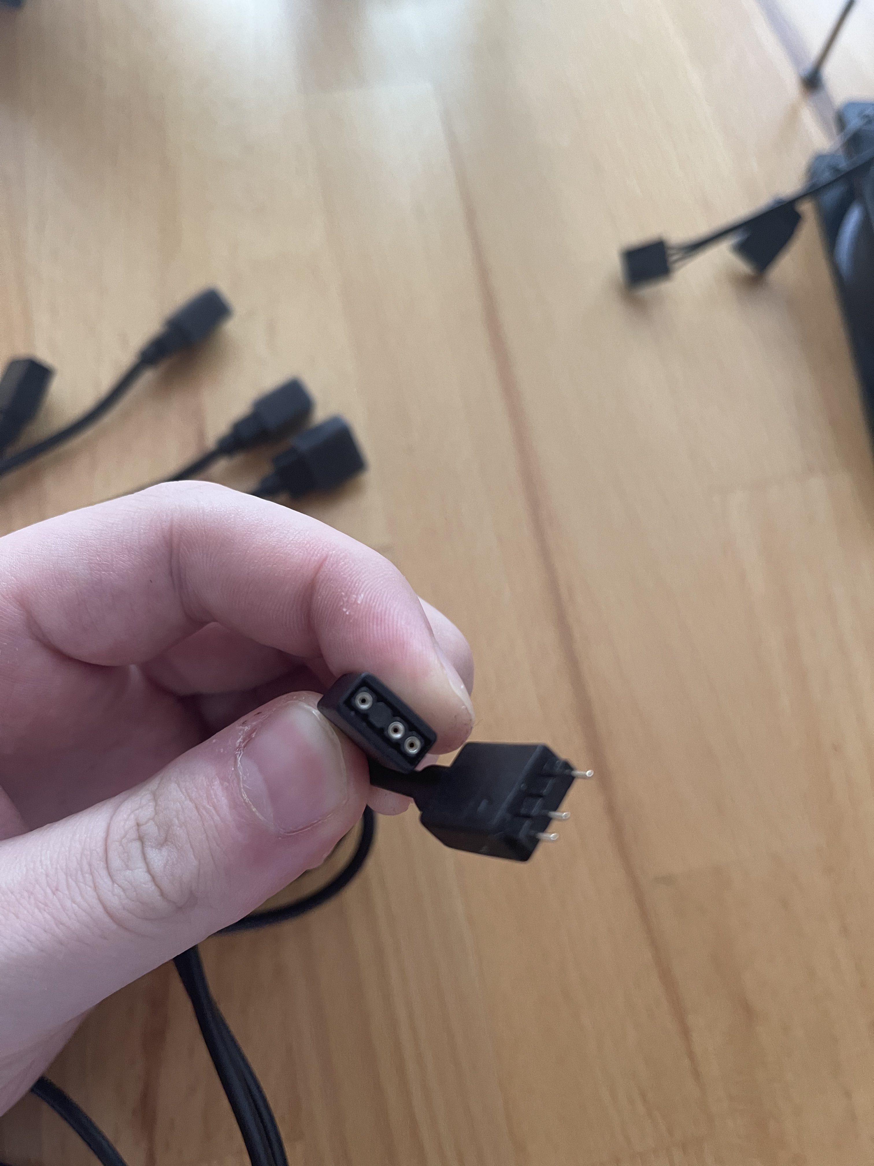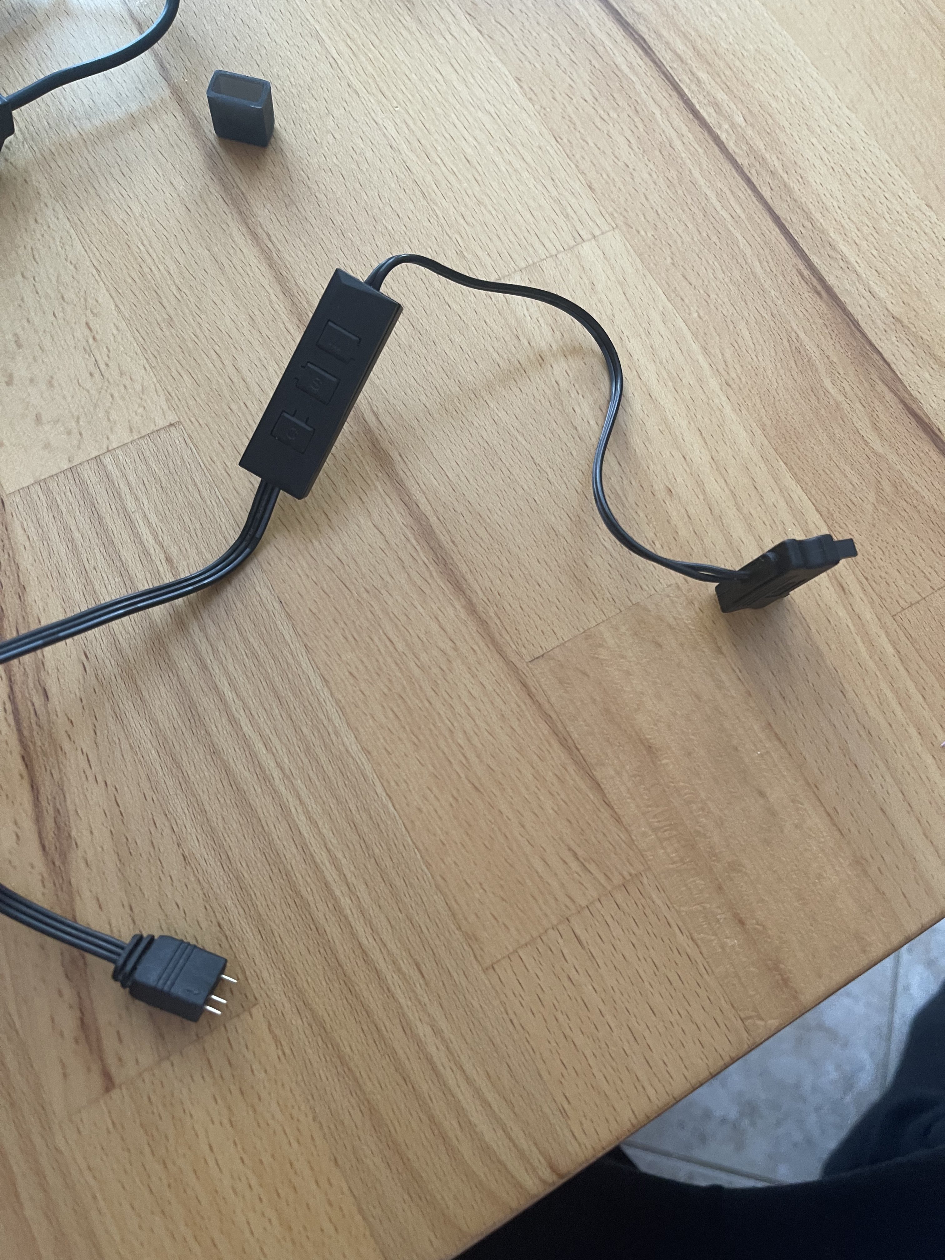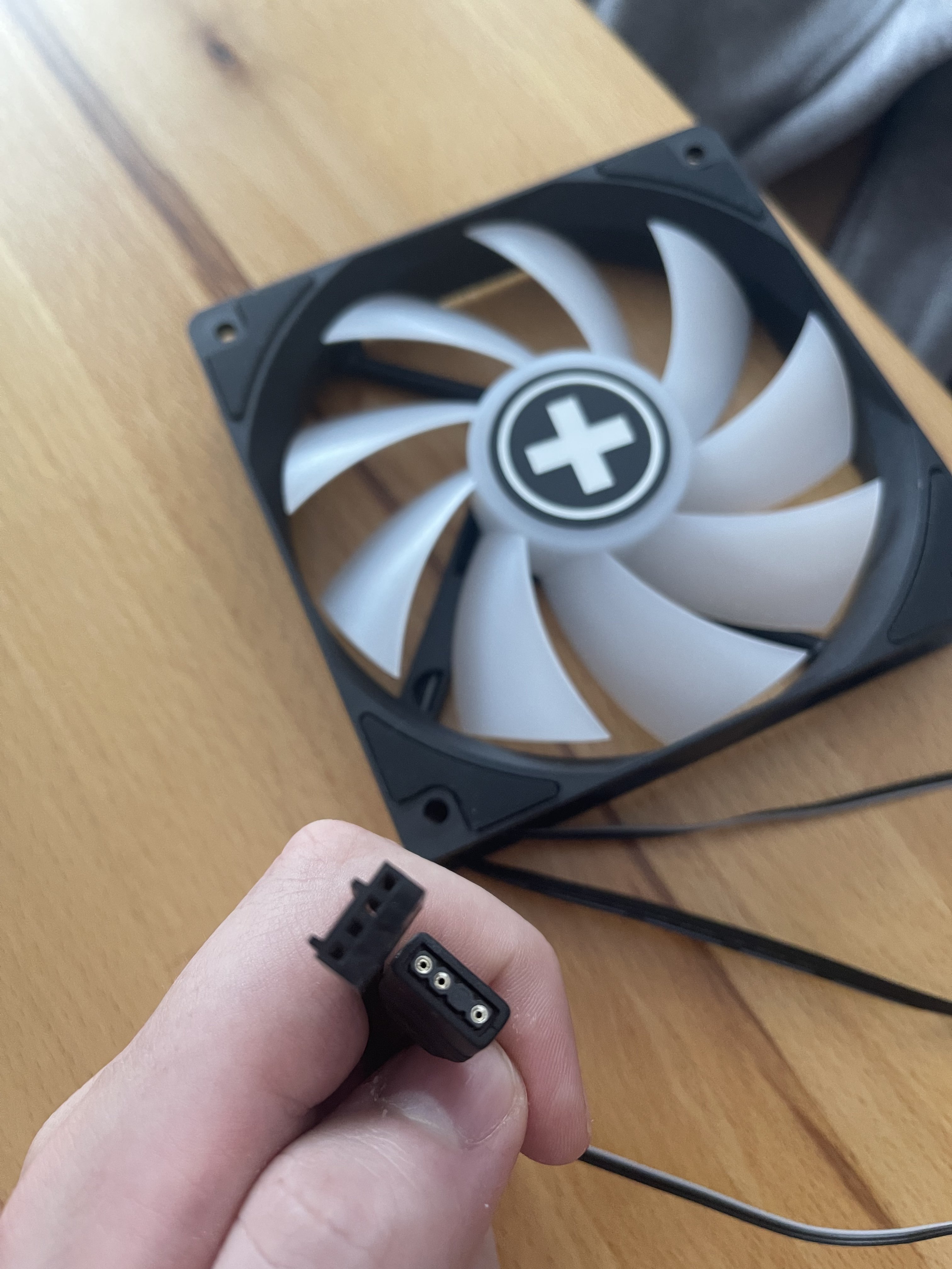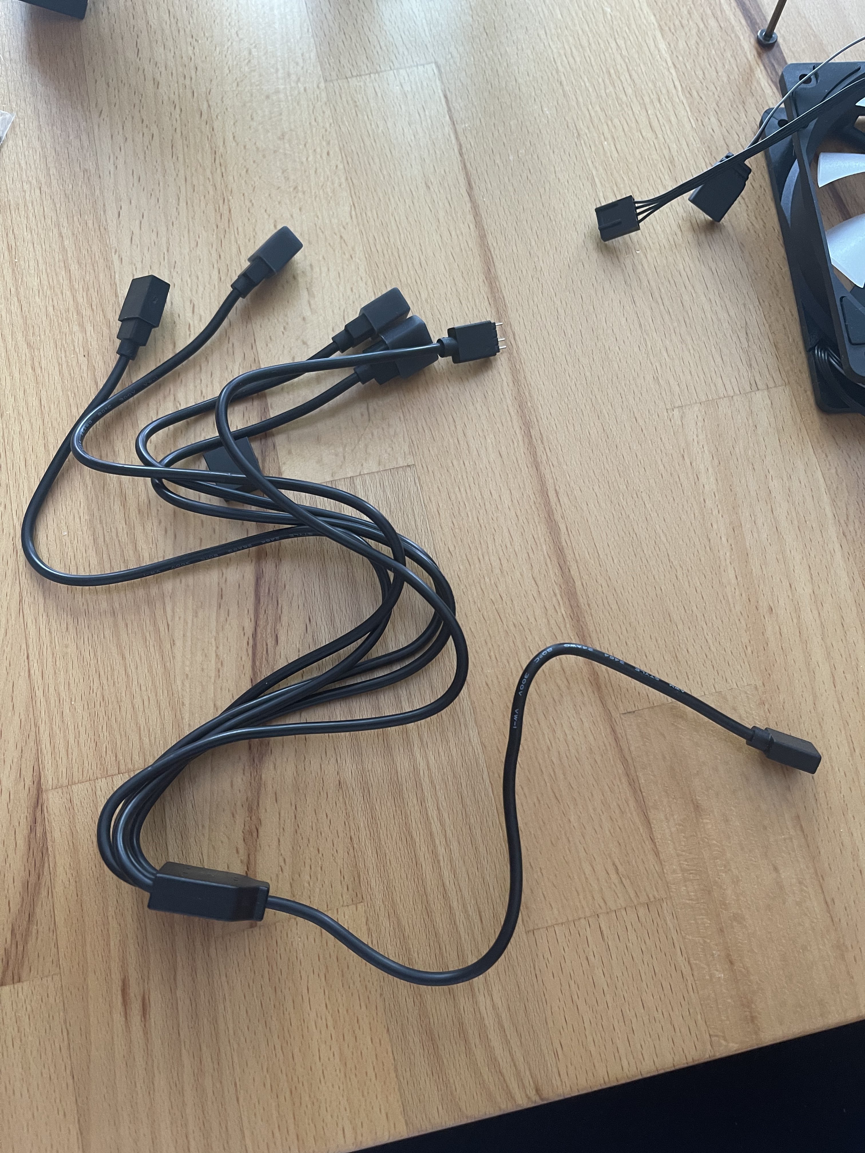 Zusätzlich habe ich so einen so ein Verteiler Kabel bestellt, dass den zweiten Anschluss hat wie das zweite Kabel vom Lüfter, jetzt bin ich mir nicht sicher, ob ich über diesen Verteiler ans Mainboard anschließen kann.