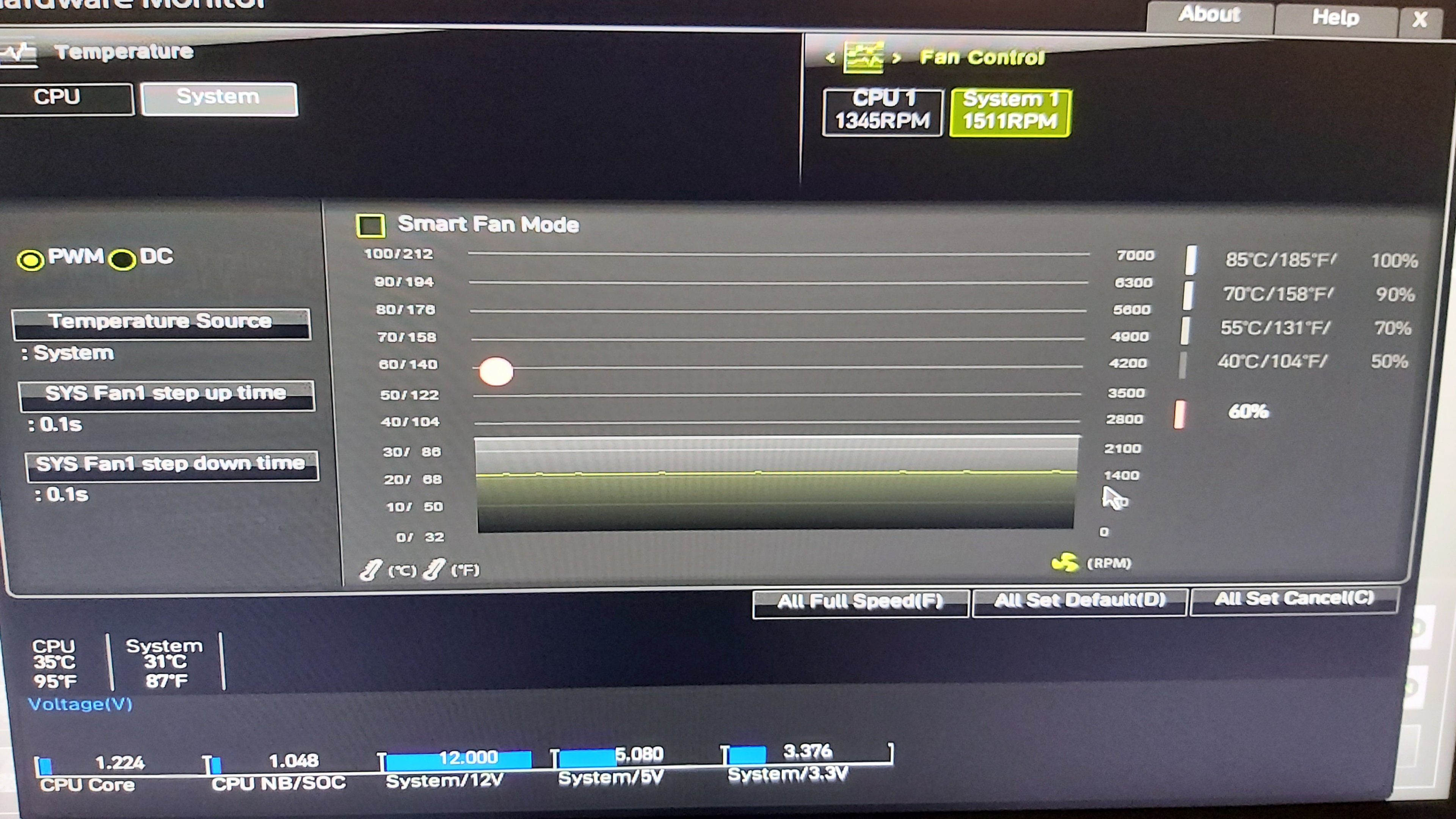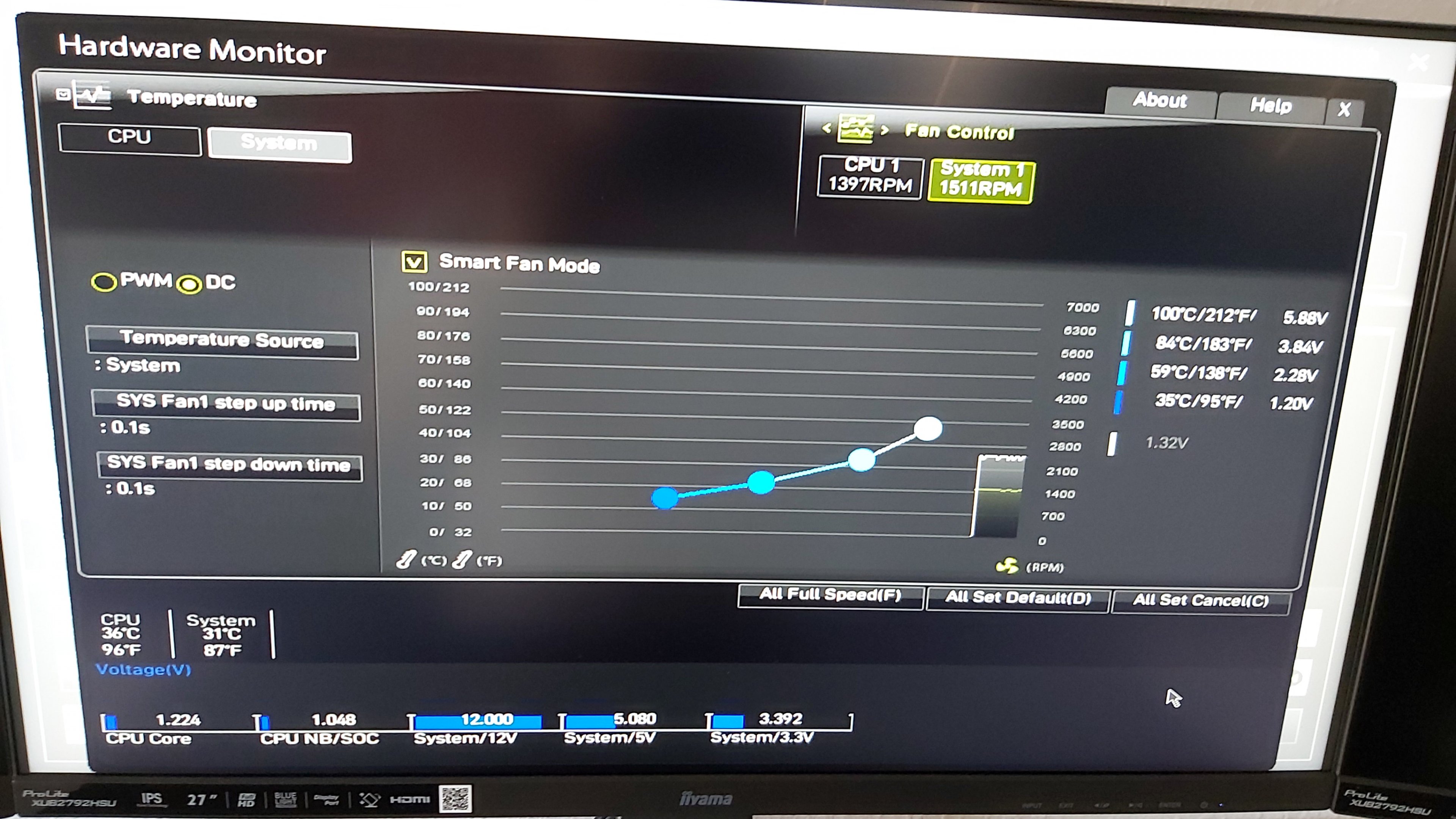 Ok, gehe auf PWM-Mode (bei CPU1 und System1) und drücke dann auf auf "ALL FULL SPEED" um zu sehen ob die Steuerung reagiert.