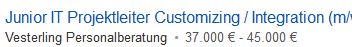 Bei monster.de habe ich nun mehrere Einträge gefunden, wo anscheinend eine Gehaltsspanne angezeigt wird, z.B.: