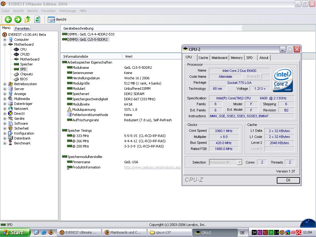 einmal cl4 und einmal cl5 speicher drin cpuz 1,37 zeigt dasselbe aber auf den speichern
