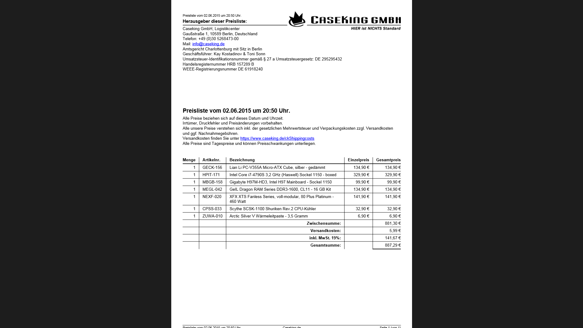 Für mich ist wichtig, dass das System leise ist und wenig Strom verbraucht, daher auch die Low Power Version. Die CPU soll nicht übertaktet werden.