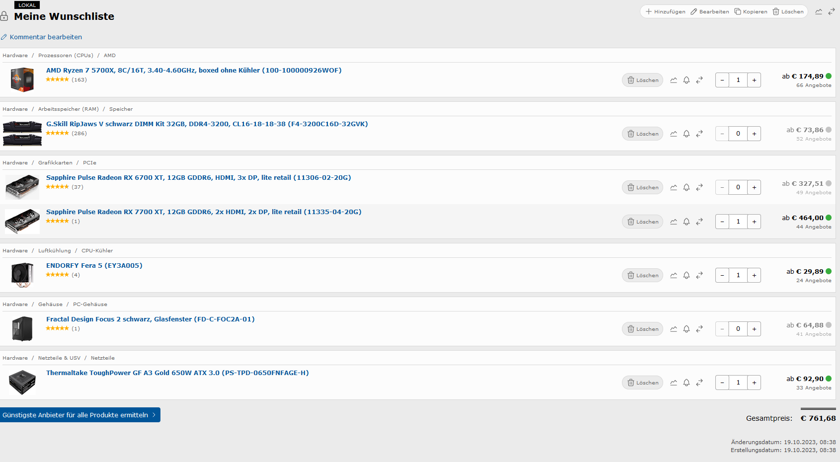 wenn das ToughPower GF A3 650W zu teuer ist: für die hardware langen auch 550W; das Pure Power 12 M 550W wäre gut 10€ günstiger. wenn das immer noch zu teuer ist und auf ATX3.0 (und einiges an garantiedauer) verzichtet werden kann -> Performance X 550W/650W.