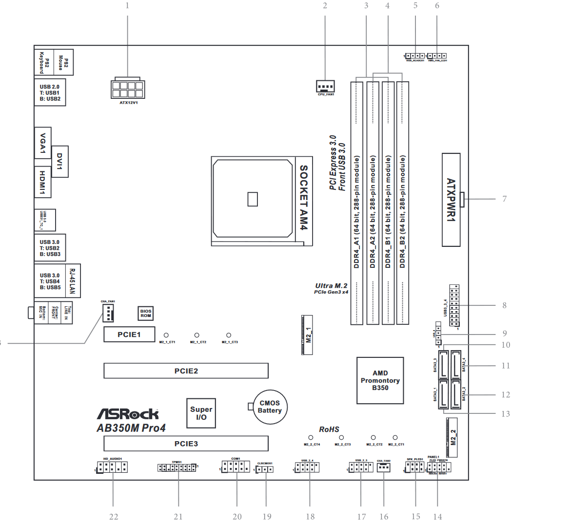 - 1 x M.2 Socket (M2_2), supports M Key type 2230/2242/2260/2280 M.2 SATA3 6.0 Gb/s module