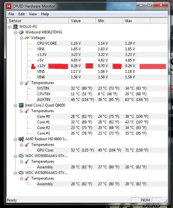 Dabei ist mir aufgefallen das bei der +12V angabe nur Max. 9,26V sind ist das normal ?