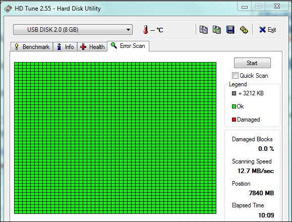 den Stick mit HD Tune geprüft - keine Probleme festgestellt (02 HD Tune)