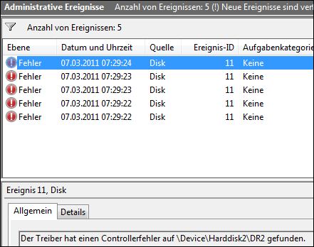 Der Treiber hat einen Controllerfehler auf \Device\Harddisk2\DR2 gefunden.