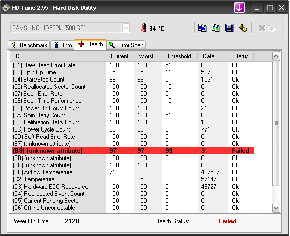 hab an einem Rechner von mir hier das Problem das er in games dauernd abstürtzt mit nem bluescreen... Dann hab ich die festplatte ma überprüfen lassen weil mir bootzeiten und so relativ lang vorkamen. Somit sah bei der überprüfung mit hd tune etwas merkwürdiges....(Siehe anhang) geht sie bald kaputt?