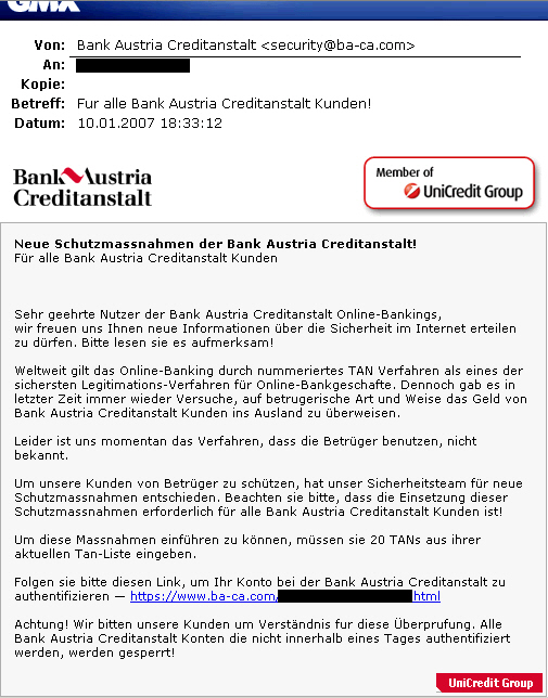 Hatte grad volgende E-Mail in meinem GMX - Spam-Ordner