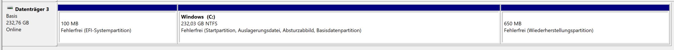 Könnte noch ein Überbleibsel von Win10 sein, kann dieser Partition auch keinen Buchstaben geben und die ist auch sonst praktisch unsichtbar ohne Inhalt. Ich kann sie in der Datenträgerverwaltung nur löschen, was ich aber ungerne machen möchte, solange ich nicht weiß, welchen Sinn die hat. Auf meinem NB hab ich diese scheinbar leere Partition nicht.