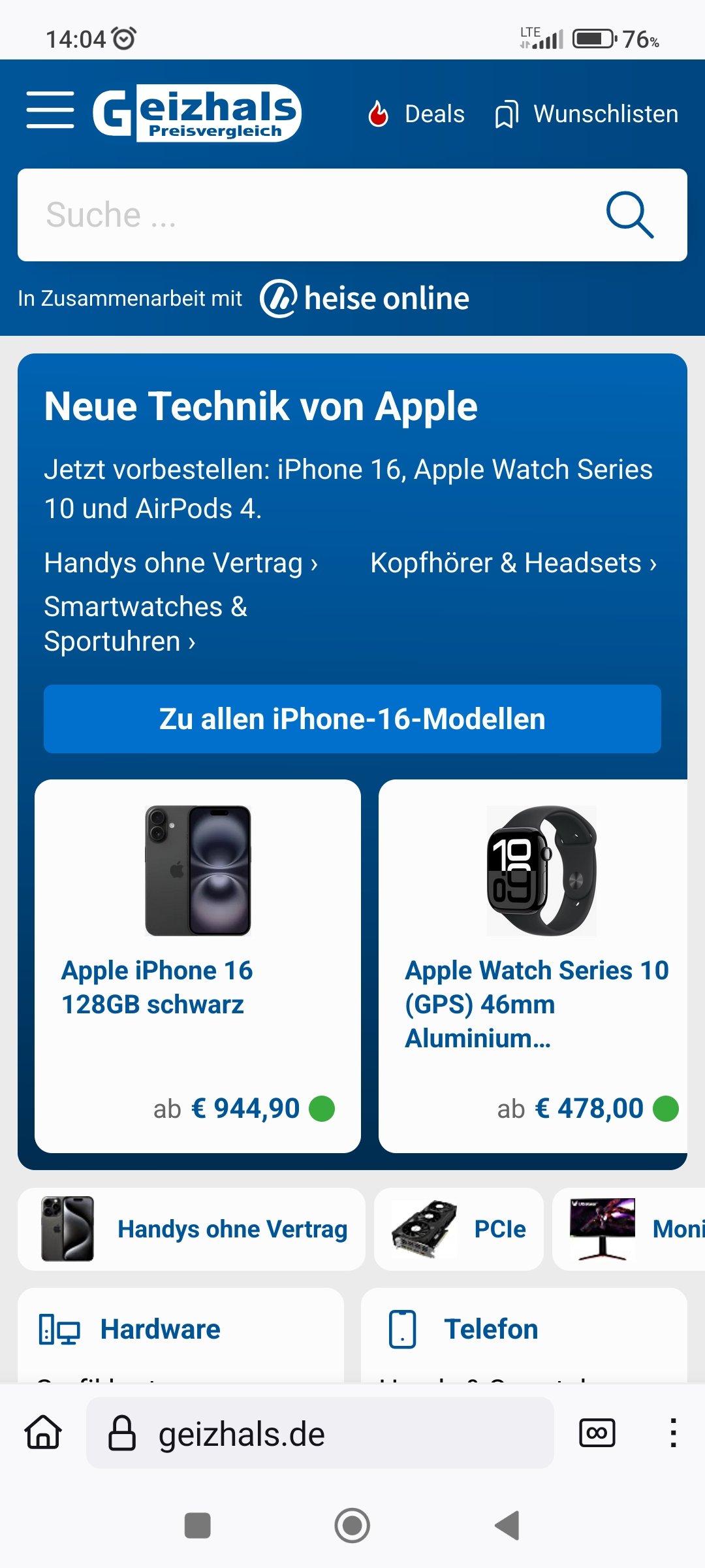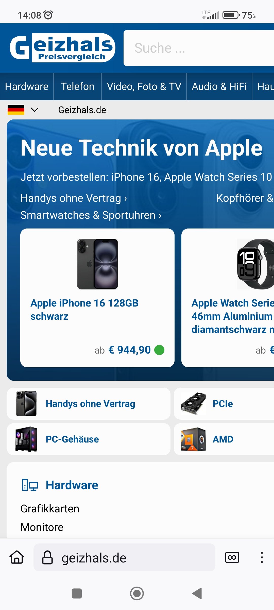 Ich habe das Problem das ich seitdem ich Geizhals.de einmalig in den Desktop Modus geschaltet habe, die Website in diesem Modus bleibt.
