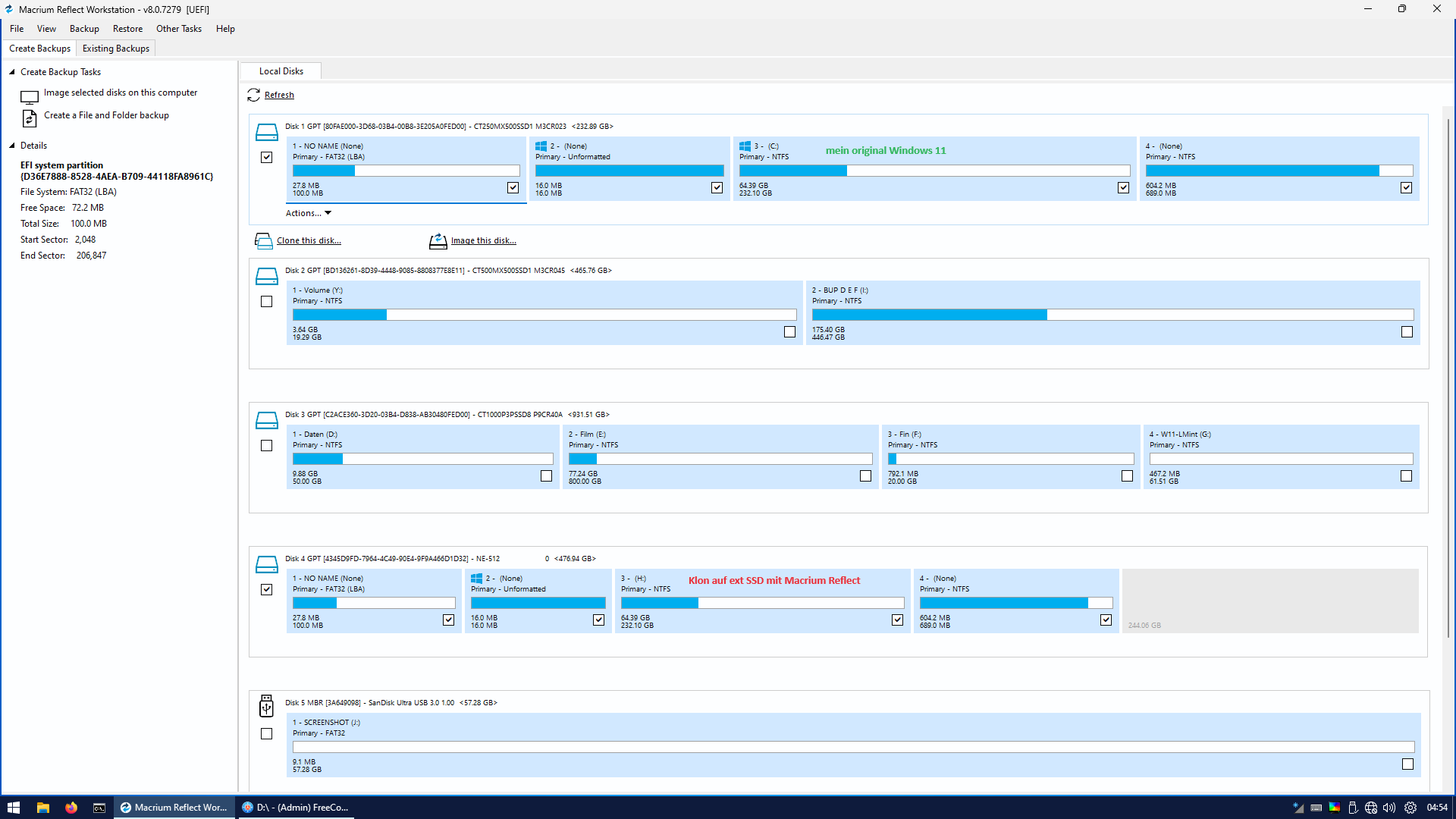 Mit Macrium Reflect habe ich mein Windows 11 auf eine externe SSD geklont, das startet auch nicht.