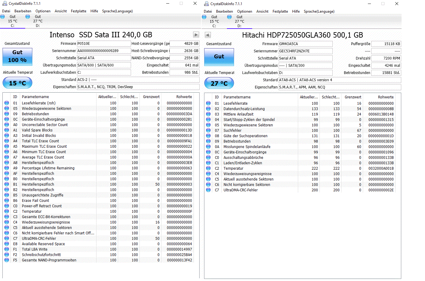 Die Festplatten scheinen auch keine Fehler aufzuweisen, den Grafiktreiber habe ich im Laufe der Zeit mehrmals geändert (3 unterschiedliche)
