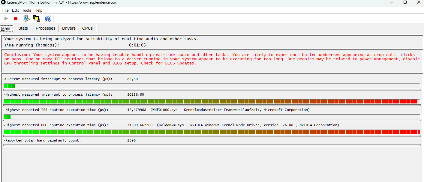 Voreingestellt ist 16 Bit, 48000 HZ, stelle ich die Qualtiät auf 16 Bit, 44100 Hz um verschwindet das Rauschen, statt dessen gibt es aber komplette Aussetzer beim Ton