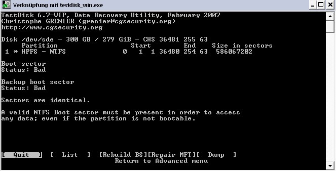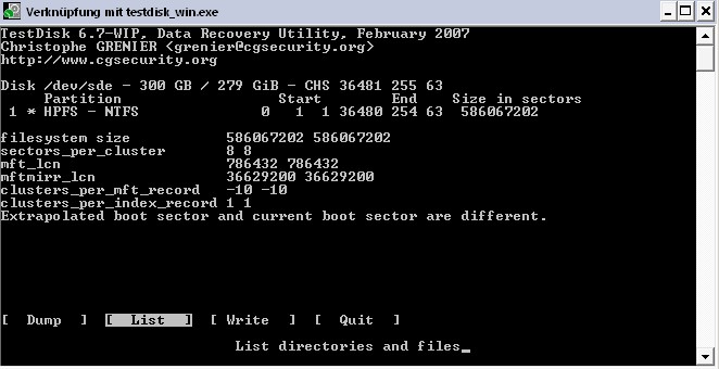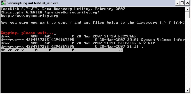 Parallel hierzu kopiere ich gerade die Partition >Video/Media-Daten< über "Testdisk" auf meine neue Festplatte. (siehe Bild 2)