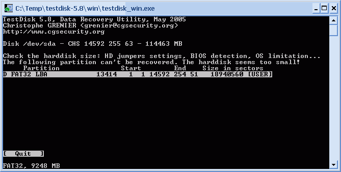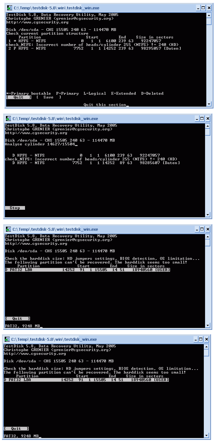 Daher gibt Testdisk diesen Fehler aus.