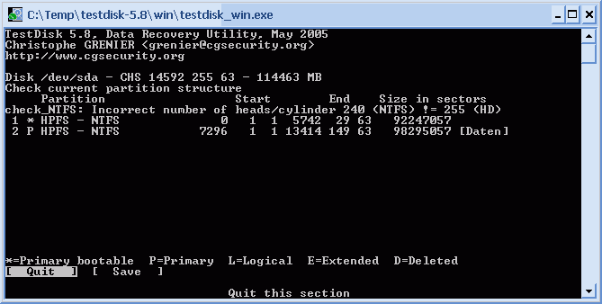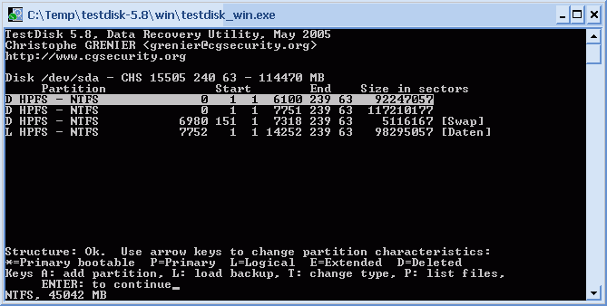 Findest du auch in der Testdisk-Anleitung bei Menüs in Testdisk / [Option]