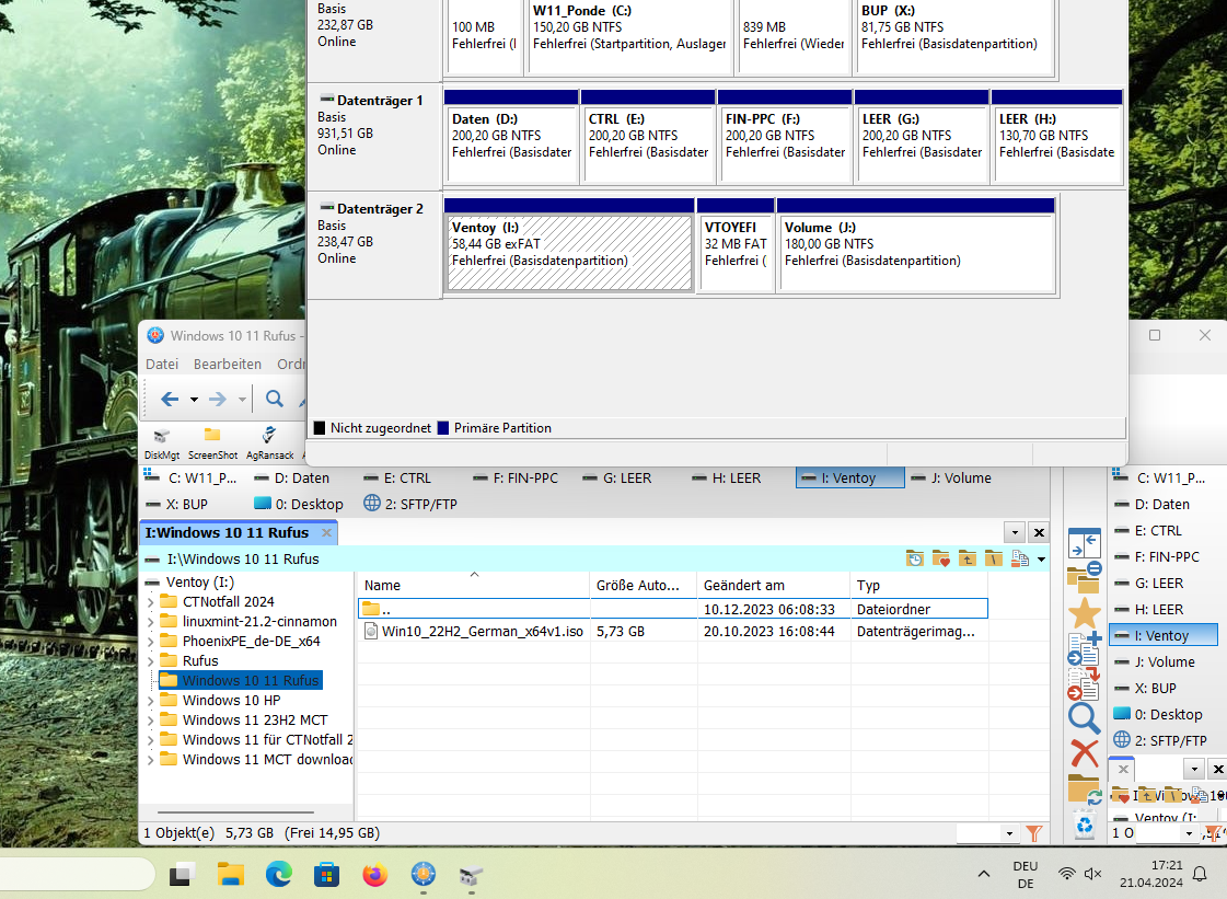 So sieht mein Ventoy Stick aus. Mit dem kann ich Windows oder Linux installieren.