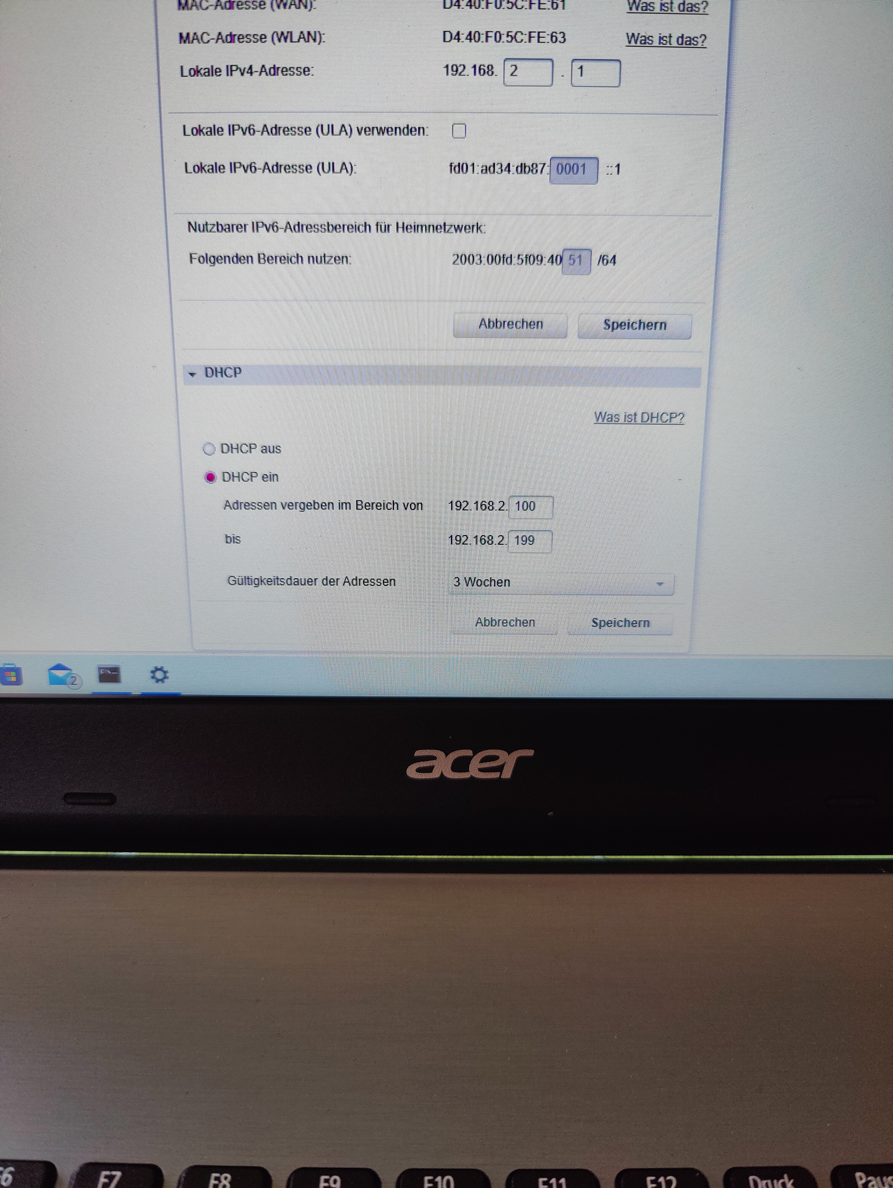 Anbei übersende ich noch Fotos der Einstellungen im Speedport (dort bekomme ich ja weiterhin Zugriff, nur über die FritzBox nicht, wenn ich diese anschließe). Wenn ich das richtig sehe, wurde hier auch der Vorschlag "a" von @norKoeri in die Tat umgesetzt, oder? Würde es demzufolge so auch bei der FritzBox gehen, wenn ich die IP-Range entsprechend vergebe?