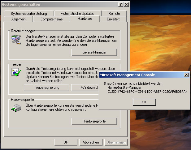 Wenn ich den Geräte-Manager starten will, erhalte ich folgende meldung: