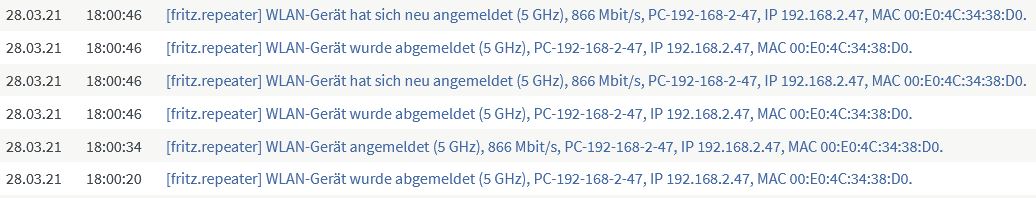 IP .101 ist zum Beispiel der WLAN-Drucker. Warum sollte sich der immer wieder abmelden und anmelden? Die .20 ist ein Desktop-PC. Der wandert auch nicht durch´s Haus. Warum diese Ab- und Anmelderei? Hat jemand eine Idee?