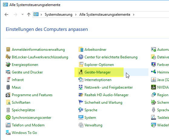 Zumindest wenn man so blind ist und den Gerätemanager in der alten Systemsteuerung nicht findet.