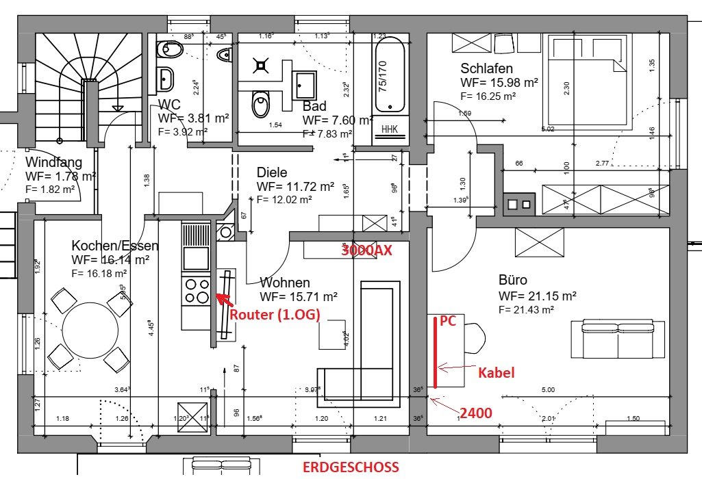 Bei mir stoert z.B. der Schacht wo die Rohre zum Obergeschoss gehen ungemein. Bei Anderen die ich kenne ist eine gut gedaemmte Holzwand oder eine mit Alufolie isolierte Innenwand der Killer. Beton/Fliesen/Metallisierte Tapeten. Dicke Waende, Fussbodenheizungen, Aquarien oder selbst riesige TV. Alles kann stoeren.