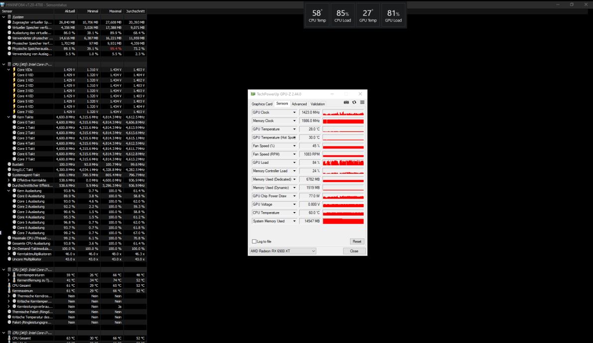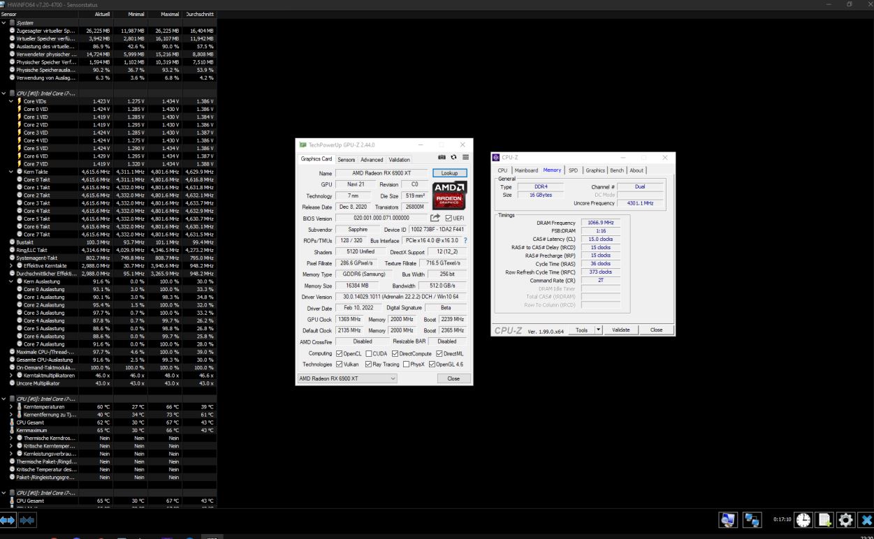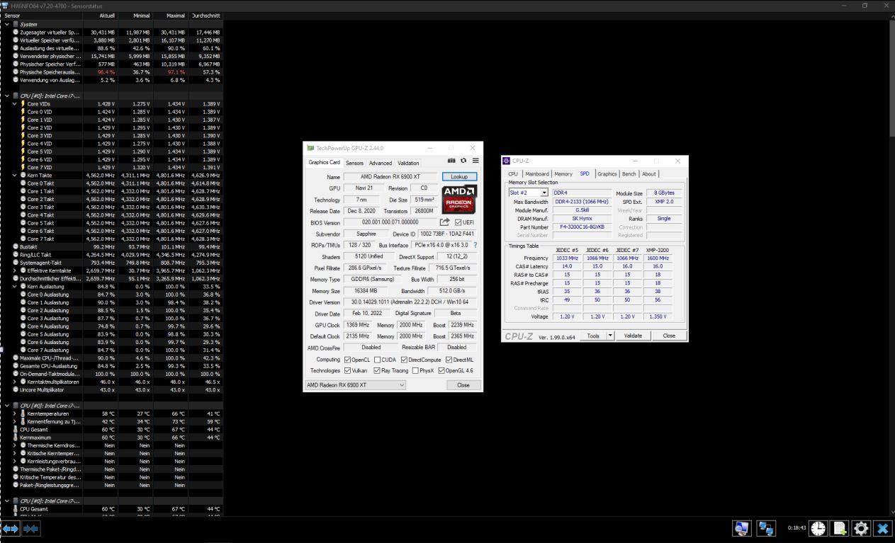 Okay dann poste doch al die bereits erwähnten Screenshots von HWInfo (bei Last!) und Memory/SPD aus GPU-Z damit wir nicht jeden Informationskrümel extra erfragen müssen und dabei noch die Gefahr besteht das die Info schlichtweg falsch ist.