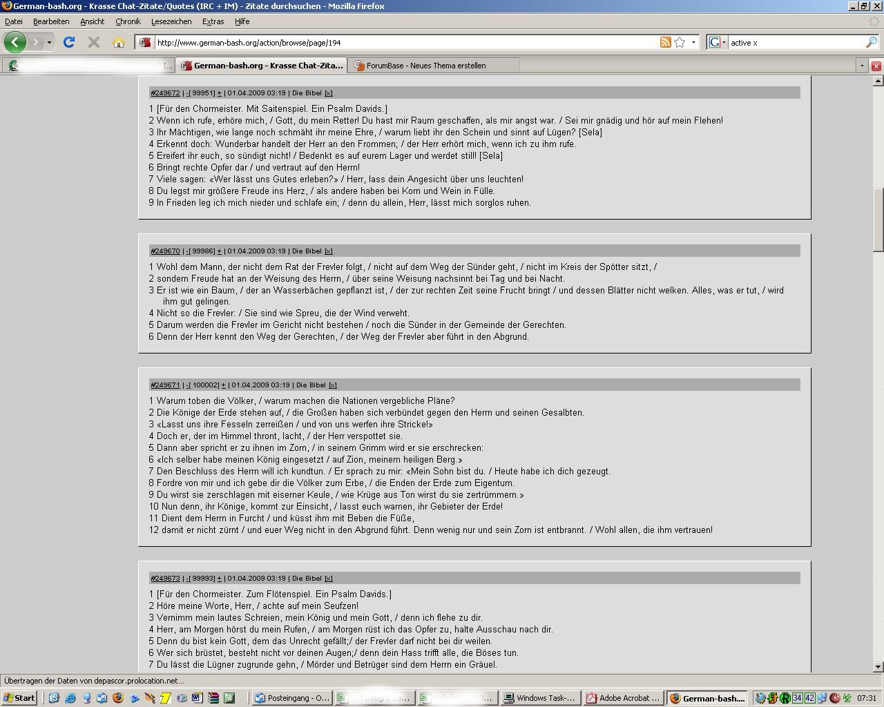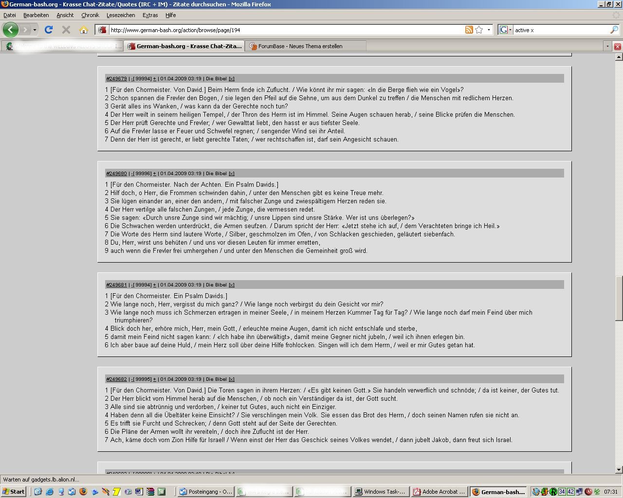 Versteh ich das richtig? Du findest es nicht gut, das die Bibel zitiert wird aber besuchst die Seite um dich über das "Pech" anderer zu amüsieren?