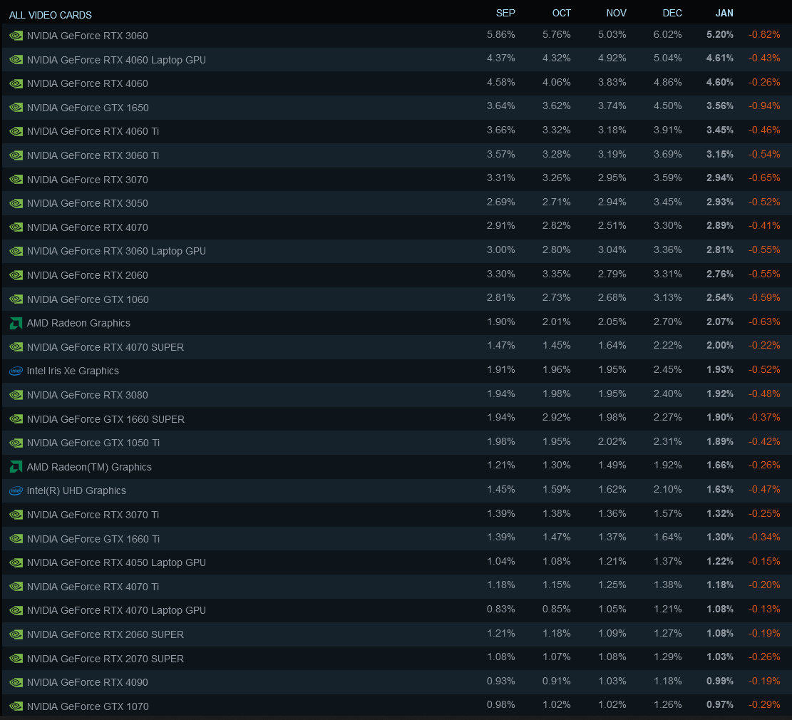 Selbst wen es bei Ihnen anders sein sollte, Sie sind nicht representativ. Die Leute kaufen nach Angebot und Geldbeutel. Und nicht wenige haben nicht das Geld für Ihre neue "Einstiegsklasse". Es gibt heute noch mehr User mit einer 1060 als 4070 Super auf Steam. Nicht wenige wissen garnicht was und wieviel Speicher sie bei einer GPU wirklich brauchen.