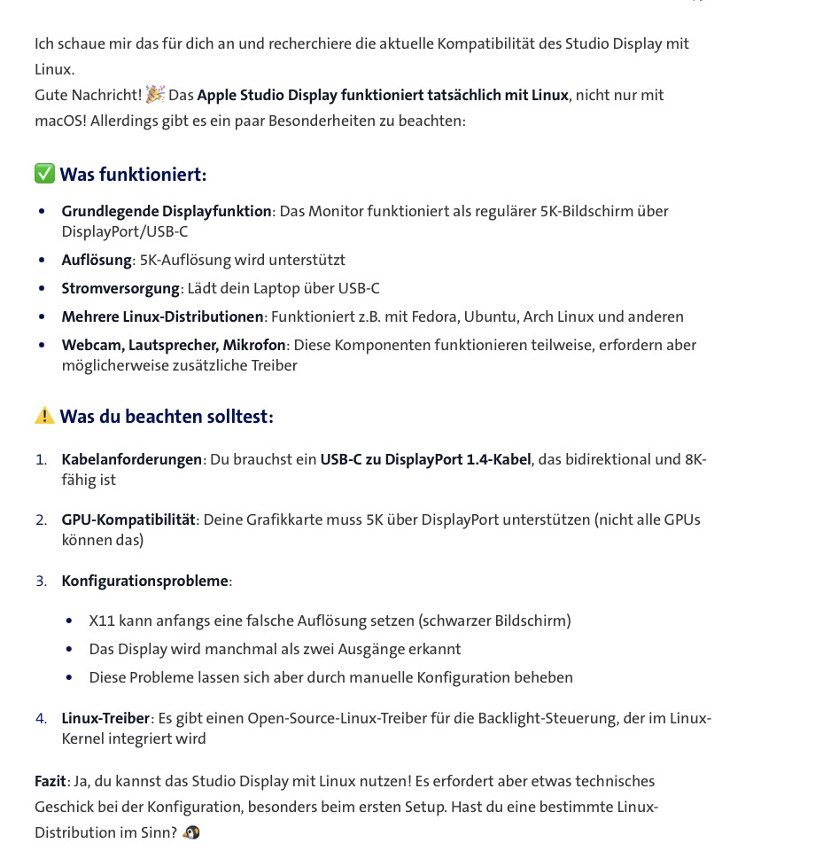 KI-Berechnungen des Bildes der integrierten Webcam? Zudem interne Video- und Audioberechnungen (Konvertierungen oder Verschlimmbesserungen). Der Mac könnte den Roh-Videodatenstream direkt an den Monitor leiten, wo dann die Berechnungen stattfinden anstelle im Mac selbst.subsherlock schrieb:A19 in einem Monitor? Jemand ne Idee, für was man die Leistung in einem Monitor benötigt?