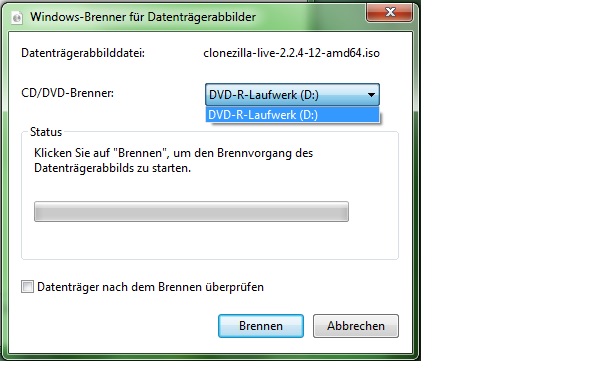 Ich kann aber nur das CD-Laufwerk auswählen, wenn ich das Programm starte.