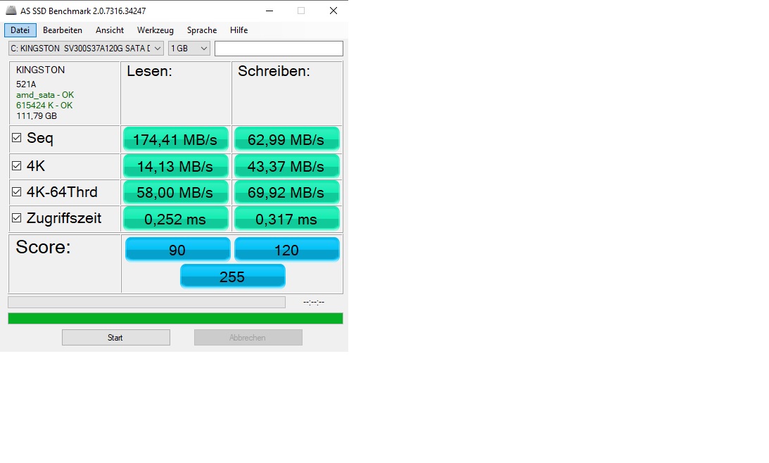 Nun habe ich über AS SSD einen Benchmark durchgeführt und war überrascht. Die SSDs müssten doch eine viel höhere Lese-/Schreibgeschwindigkeit haben oder nicht? Im Anhang füge ich ein paar Screenshots hinzu.