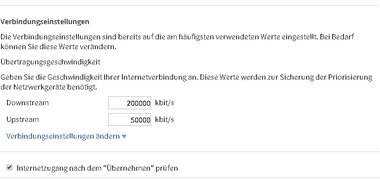 Die Fritzbox ist mit 200000kbit down und 50000 mbit up konfiguriert. Wenn ich jetzt bei beiden z.b