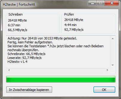Dies sind die Werte die mir Windows anzeigt, wenn ich eine große Datei, knapp 4GB groß übertragen will.
