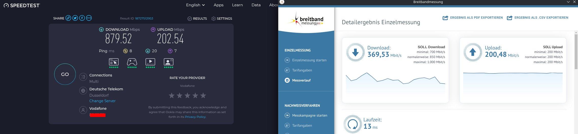 Da gibts verschiedene Möglichkeiten. Die naheliegendste in dem Kontext ist, das speedtest.net ihren Server "besser"/anders an VF angebunden hat als eben die BNetzA. Stichwort "Peering", bisher eigentlich nur bei Telekom-Kunden als mögliches Problem bekanntLDNV schrieb:Was mich stutzig macht, vielleicht kann mir das jemand erklären, warum kommen immer mal so unterschiedliche Ergebnisse zu Stande? Mir ist jetzt schon öfter aufgefallen das Breitbandmessung manchmal wesentlich weniger anzeigt als zum beispiel Speedtest.net: