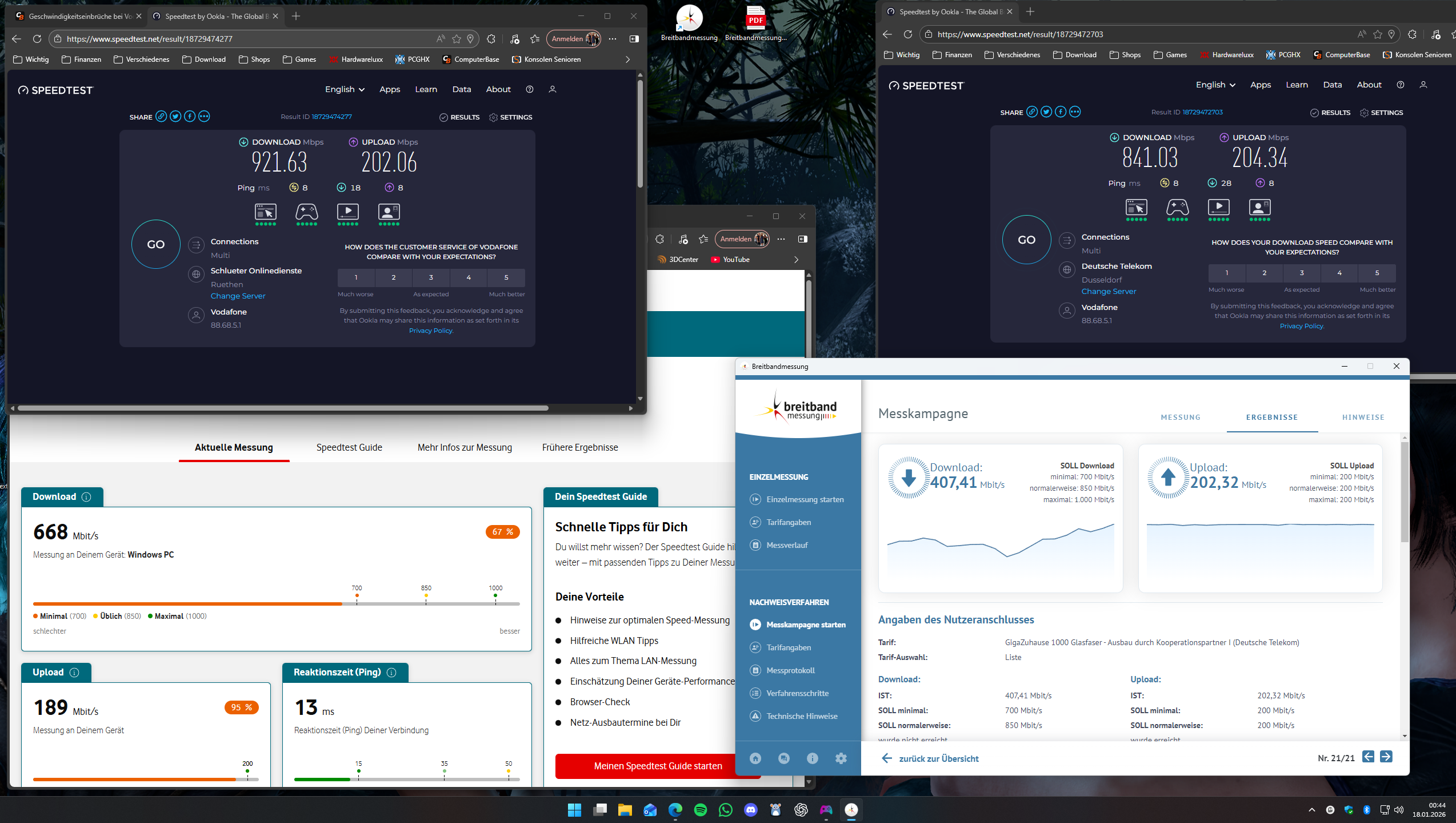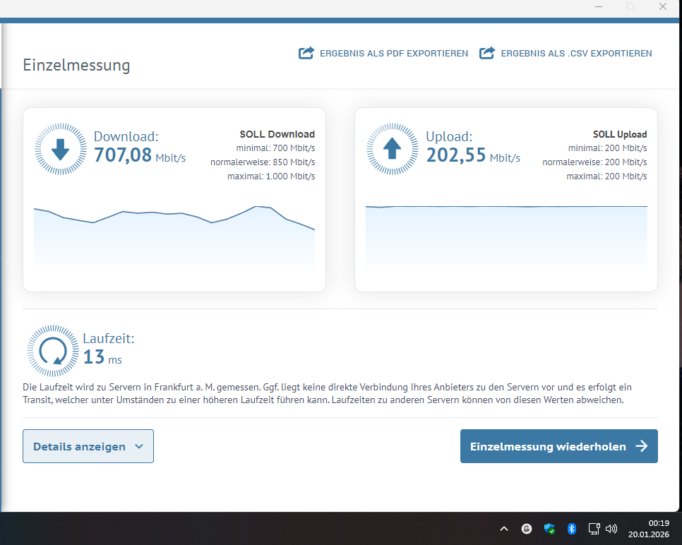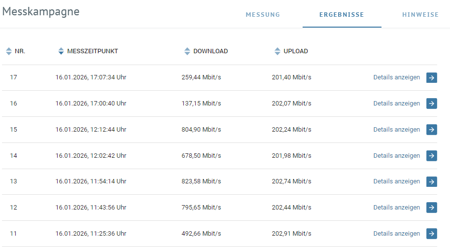 Ich hab jetzt natürlich heute sehr viele Testmessungen gemacht, auch über Vodafone (weil sie die ja selbst sehen und wegen den Test ID´s nach denen sie fragen), sowie auch über die Breitbandmessung, da ich ab heute den nächsten Durchgang der Kampagne machen kann.