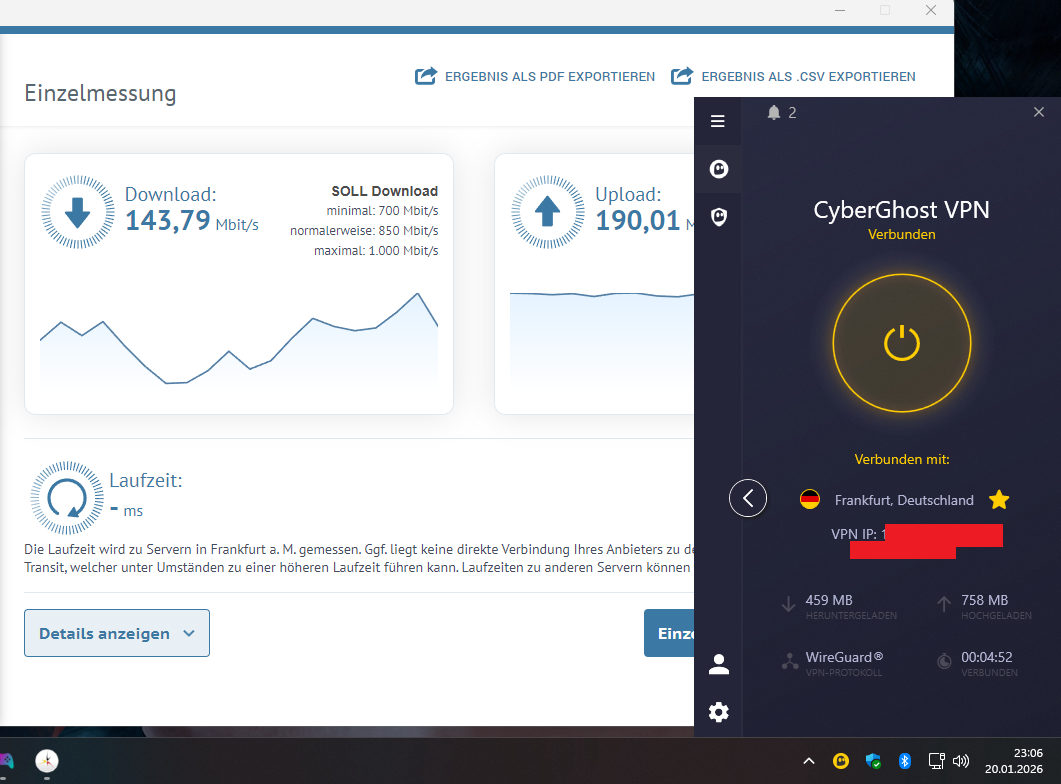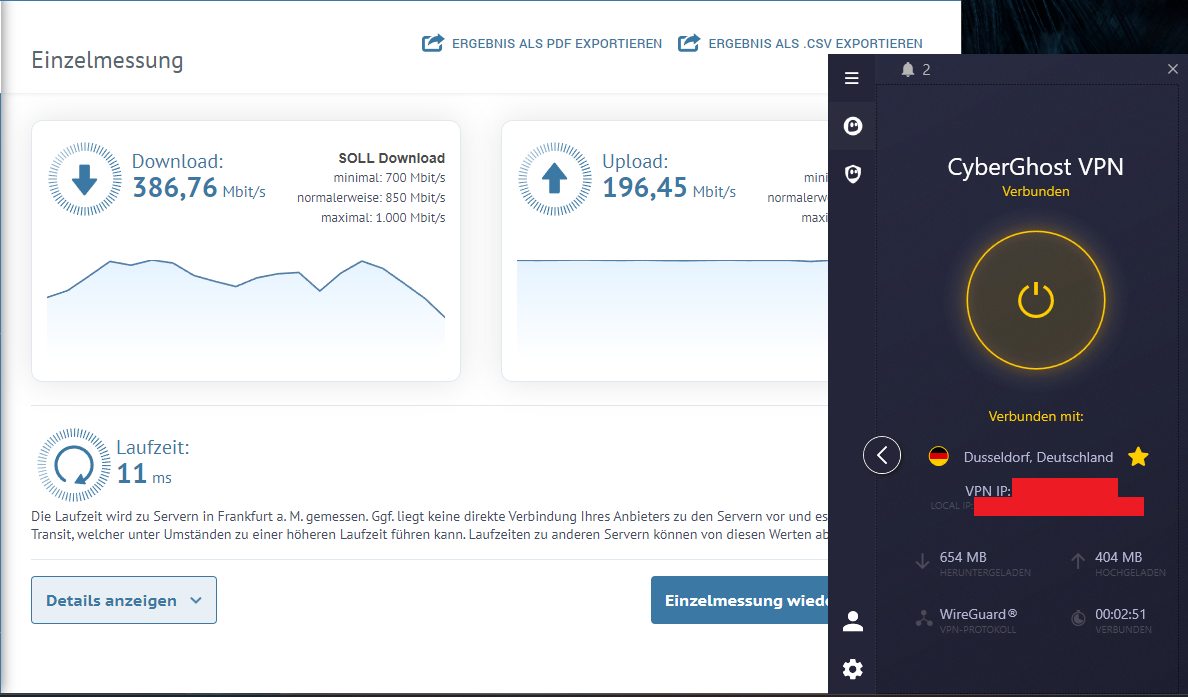 Über speedtest passt es gerade egal ob mit oder ohne VPN.