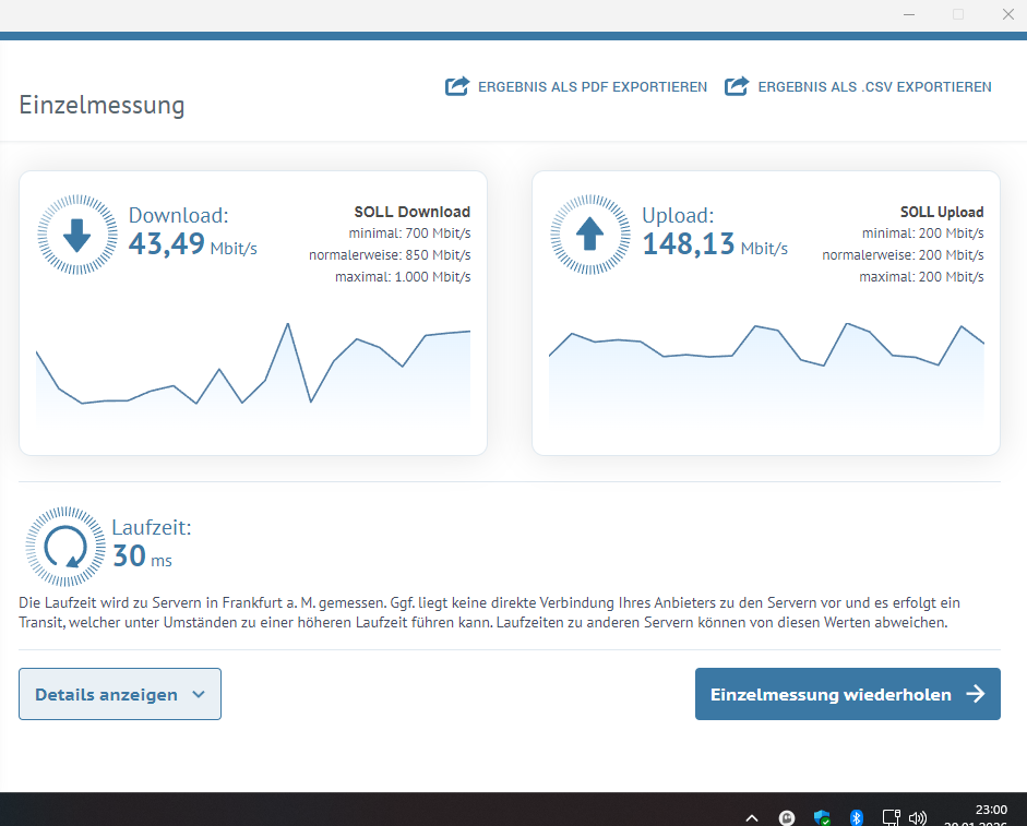 Und was die Leitungsperformance angeht lieber auf speedtest.net verlassen.