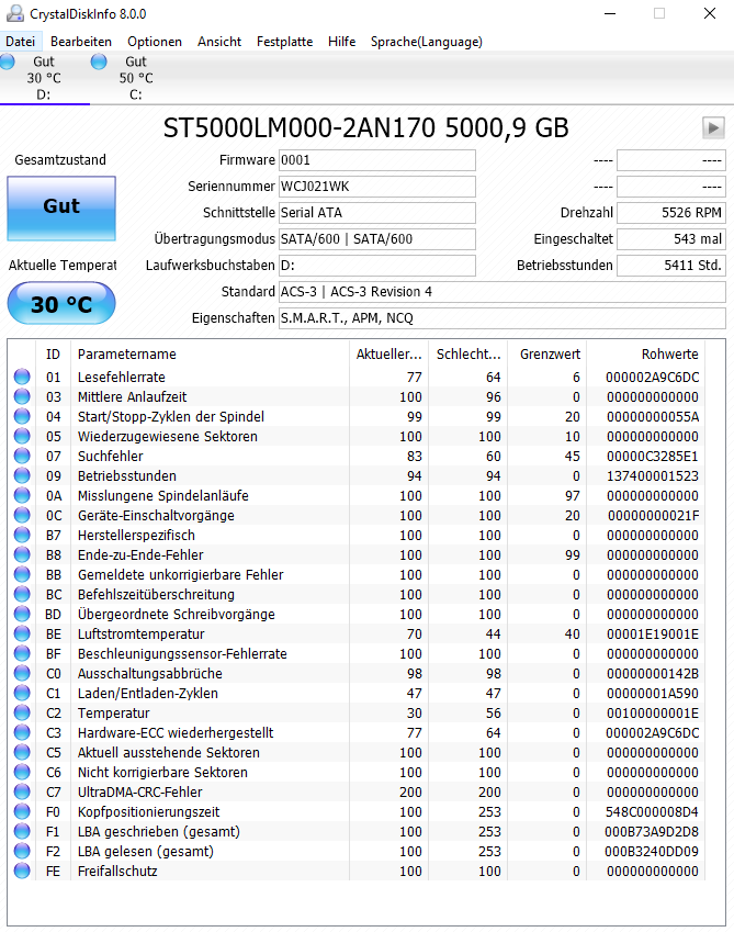 Der Screen stammt aus CrystalDiskInfo