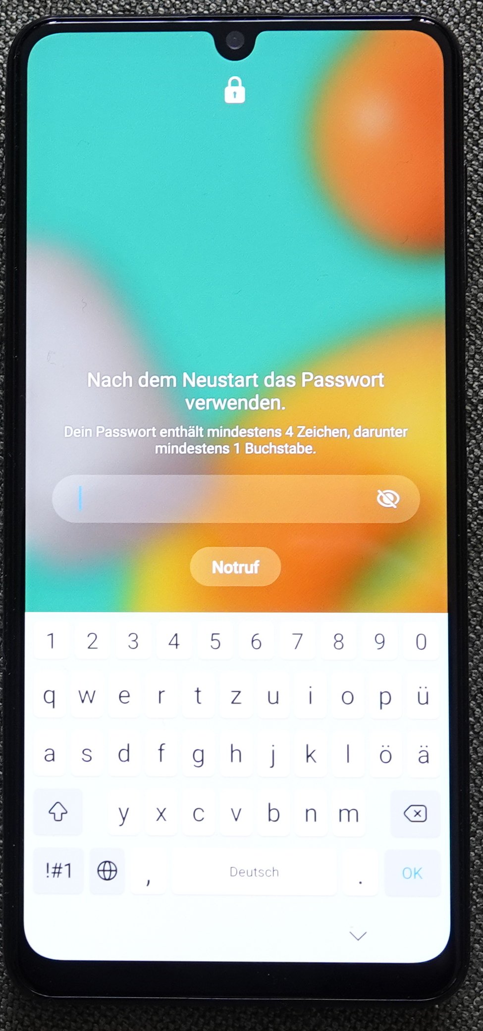 Wenn ich mein Handy starte, dann erhalte ich folgende Aufforderung: