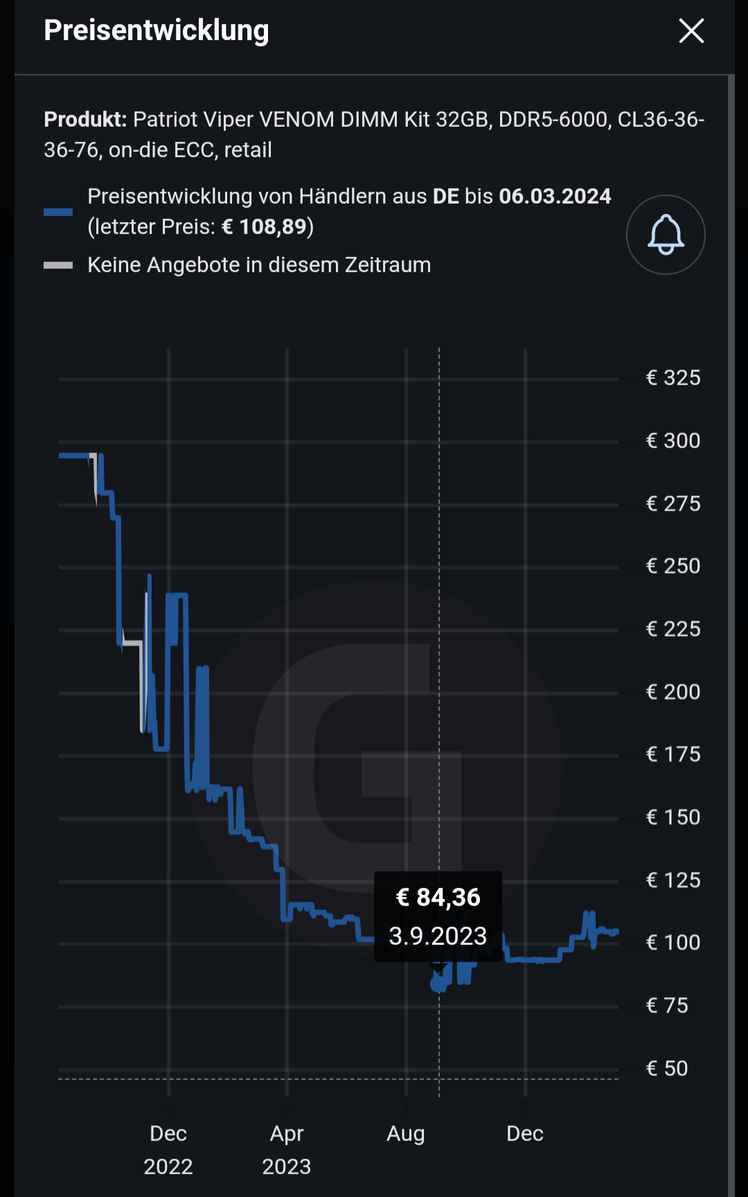 Ja krass. Kostet der ideale gaming PC für ca. 1000€ (Laut dem tollen thread in der Kaufbetrag hier) nun 1133€ anstelle von 1090€, wenn man die Speicherpreise vom Sommer 2023 einsetzen würde. Daran scheitert der Kauf auch nicht.