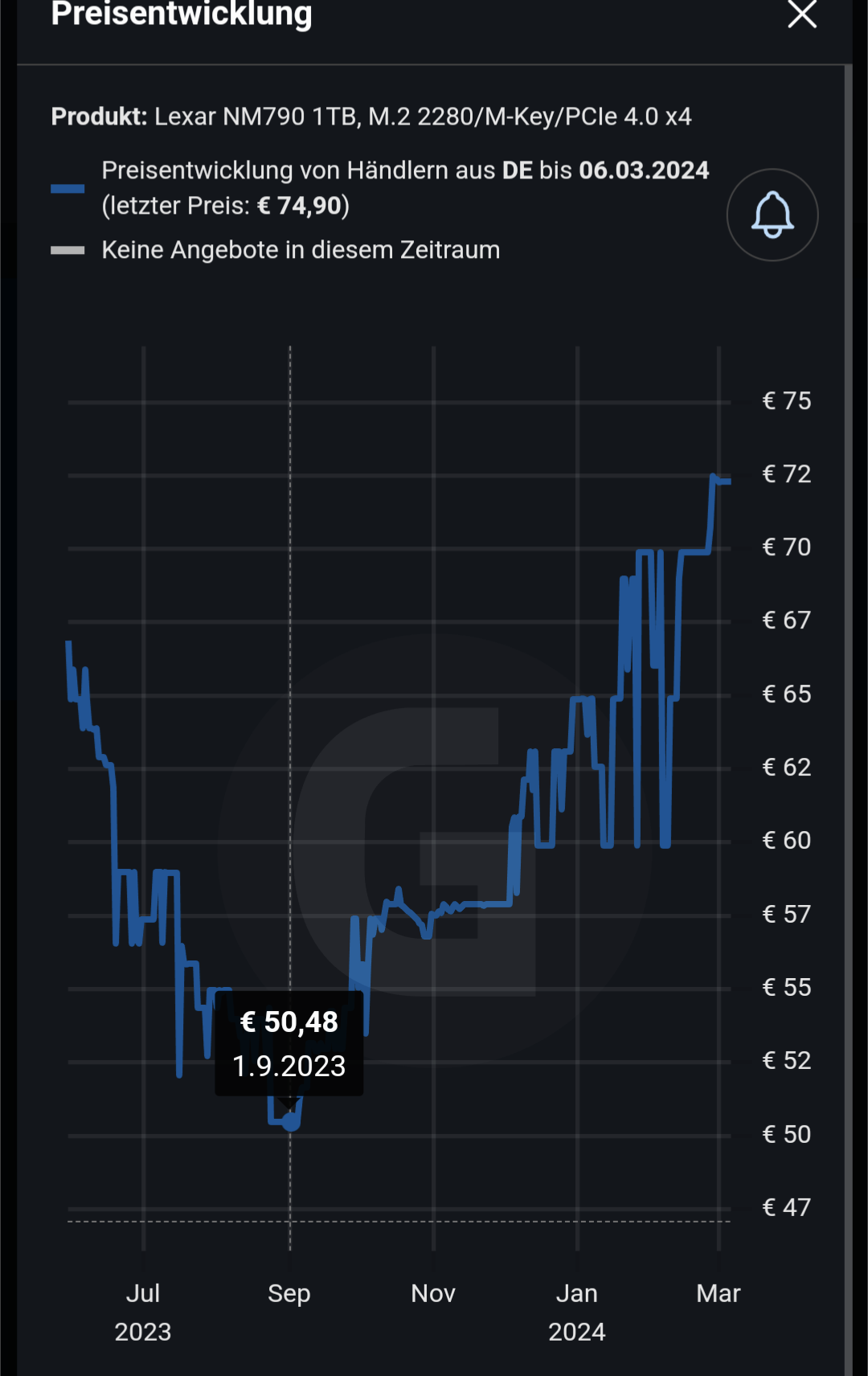 Aber insgesamt gesehen, ist der aktuelle Preis mit ca. 270 € gar nicht mal so schlecht. Die meiste Zeit über wurde die SSD für um die 320 € angeboten.