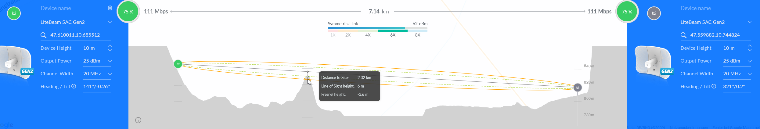 ich würde gerne zwei Gebäude mit einer Entfernung von 7,2km per Richtfunk vernetzen.