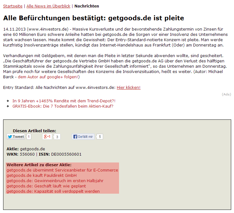 War übrigens so frei und hab meine noch ausstehende Bewertung bei Geizhals gesetzt, ergänzt um den Hinweis auf Zahlungsunfähigkeit des Händlers. Für getgoods.de hat das jemand schon getan gehabt. Vielleicht schreibt der ein oder andere, der gerade Probleme hat auch noch eine um einen Warnhinweis ergänzte Bewertung, sodass es quasi nicht mehr übersehen werden kann.