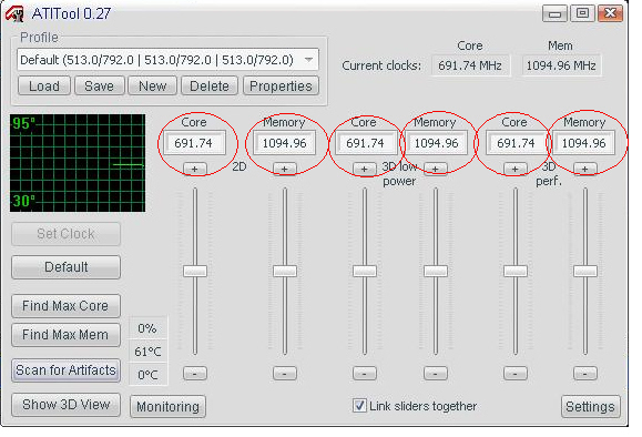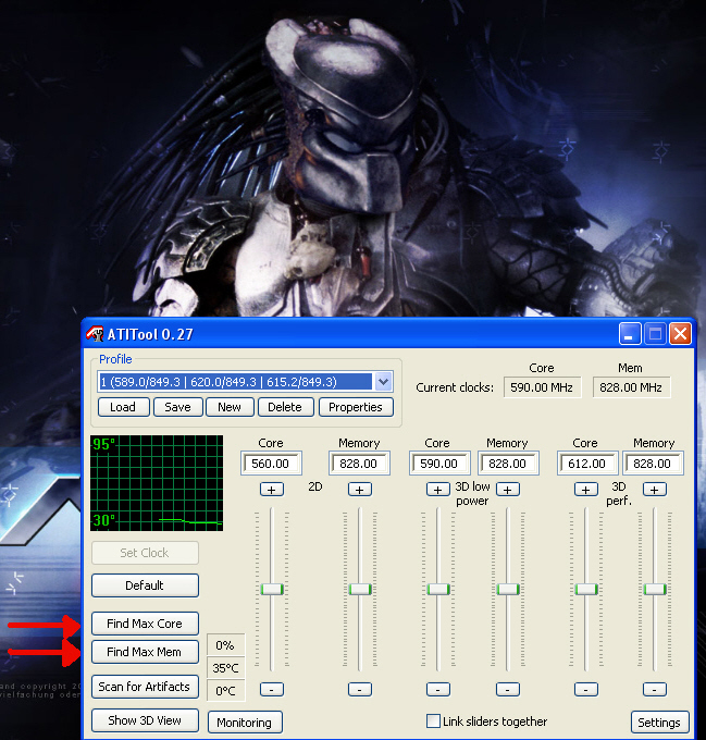 Lade dir das ATI-Tool runter und lasse die Maximalen Taktraten automatisch suchen!